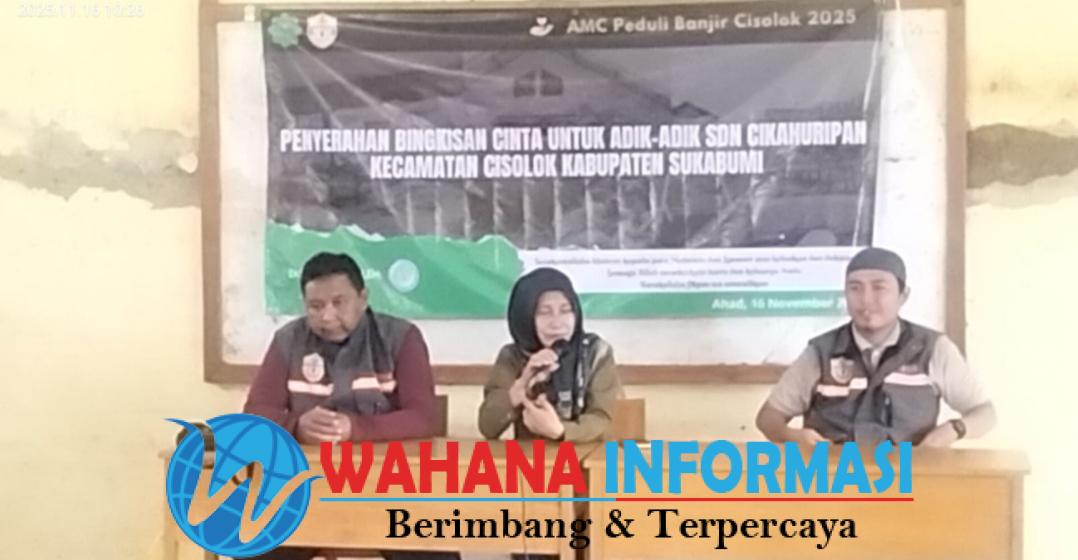 wahanainformasi.com – Cisolok – Abum Muslim Community (AMC) dari Yayasan Abu Bakr As-Shiddiq mengunjungi Sekolah Dasar Negeri Cikahuripan Kecamatan Cisolok yang terkena banjir bandang, Minggu, 16/11/2025.