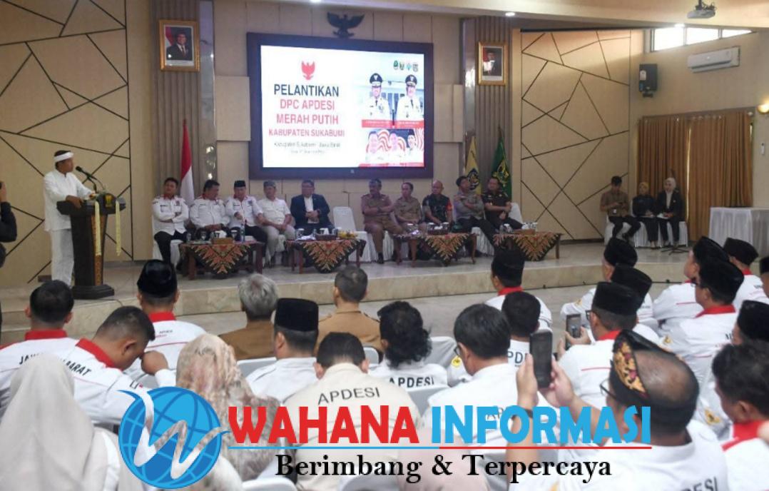 wahanainformasi.com – Sukabumi – Pengurus DPC Asosiasi Pemerintahan Desa Seluruh Indonesia (Apdesi) Merah Putih Kabupaten Sukabumi periode 2025–2030 resmi dilantik di Aula Sekretariat Daerah Kabupaten Sukabumi, Senin (1/12/2025). Pelantikan ini turut dihadiri Gubernur Jawa Barat H Dedi Mulyadi, Bupati Sukabumi H Asep Japar, Sekda H Ade Suryaman, unsur Forkopimda, anggota Komisi I DPRD Provinsi Jawa Barat, serta DPD Apdesi Merah Putih Jawa Barat.