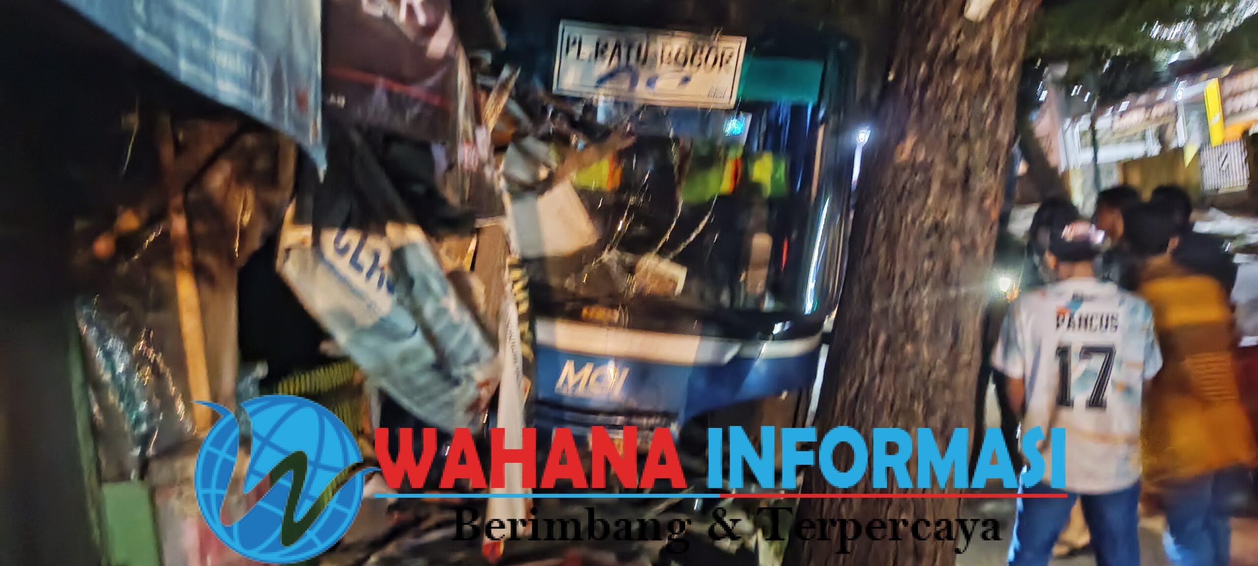 Diduga Alami Rem Blong Bus MGI Meluncur Tabrak Pohon.