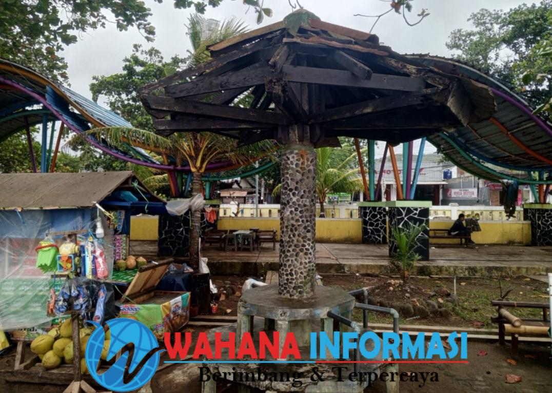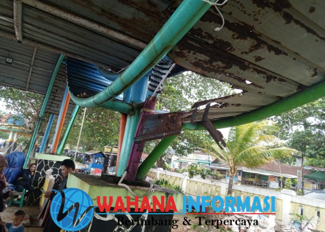“Sejumlah atap sudah rusak dan nampak terkelupas dikhawatirkan kalau ada angin besar bisa terbang dan menimpa pengunjung”.ungkapnya