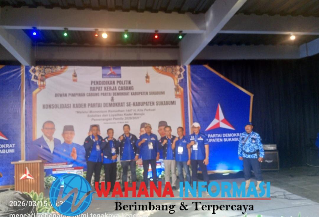 Wahanainformasi.com – Sukabumi – Dewan Pimpinan Cabang (DPC) Partai Demokrat Kabupaten Sukabumi menggelar kegiatan Pendidikan Politik dan Rapat Kerja Cabang (Rakercab) yang dirangkaikan dengan konsolidasi kader se-Kabupaten Sukabumi. Kegiatan tersebut berlangsung pada Minggu, 13 Maret 2026, di Teras Muara, Desa Citepus, Kecamatan Palabuhanratu, Kabupaten Sukabumi.