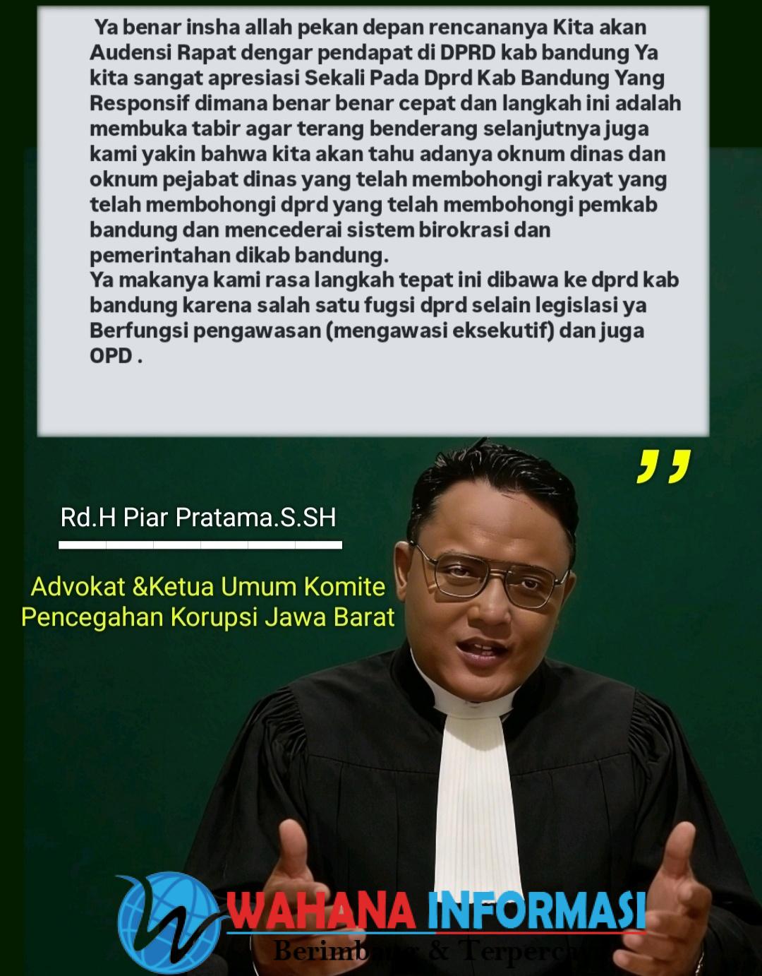 Saat kami meminta penjelasan kepada ketua Komite Pencegahan Korupsi jawa Barat yaitu Rd.H.Piar Pratama.S.SH, yang bersangkutan menjawab :
