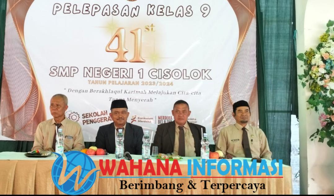 wahanainformasi.com – Sukabumi – Dalam rangka pelepasan siswa kelas akhir tahun ajaran 2023-2024, SMPN 1 Cisolok mengadakan acara resmi yang bertempat di aula SMPN 1 Cisolok, Kamis, 13 Juni 2024.