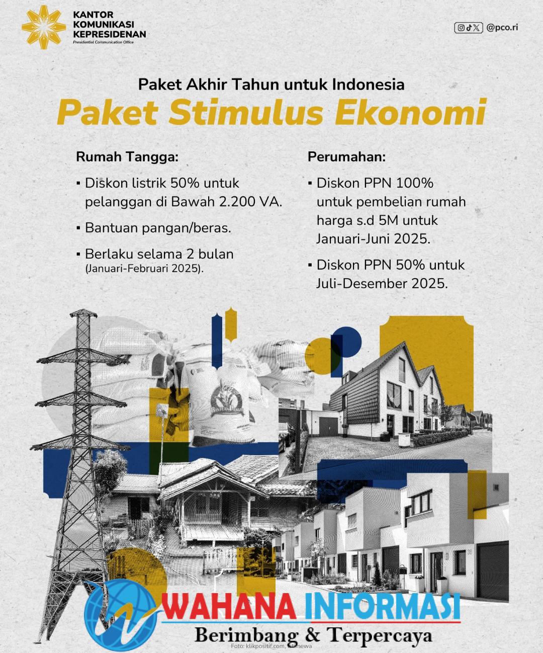 wahanainformasi.com – Jakarta – Ada paket hadir di depan pintu masyarakat Indonesia mulai Januari 2025! Kementerian Keuangan mengeluarkan kebijakan berbentuk Paket Stimulus Ekonomi dalam 6 sektor, 2 diantaranya adalah rumah tangga dan perumahan. Setiap rupiah yang dikenakan PPN akan kembali untuk rakyat melalui paket ini, khususnya masyarakat rentan.