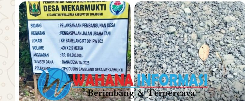 Wahanainformasi.com – Sukabumi – Program pembangunan Jalan Usaha Tani (JUT) yang dilakukan Desa Mekarmukti, Kecamatan Waluran, Kabupaten Sukabumi, kini tengah menjadi sorotan publik