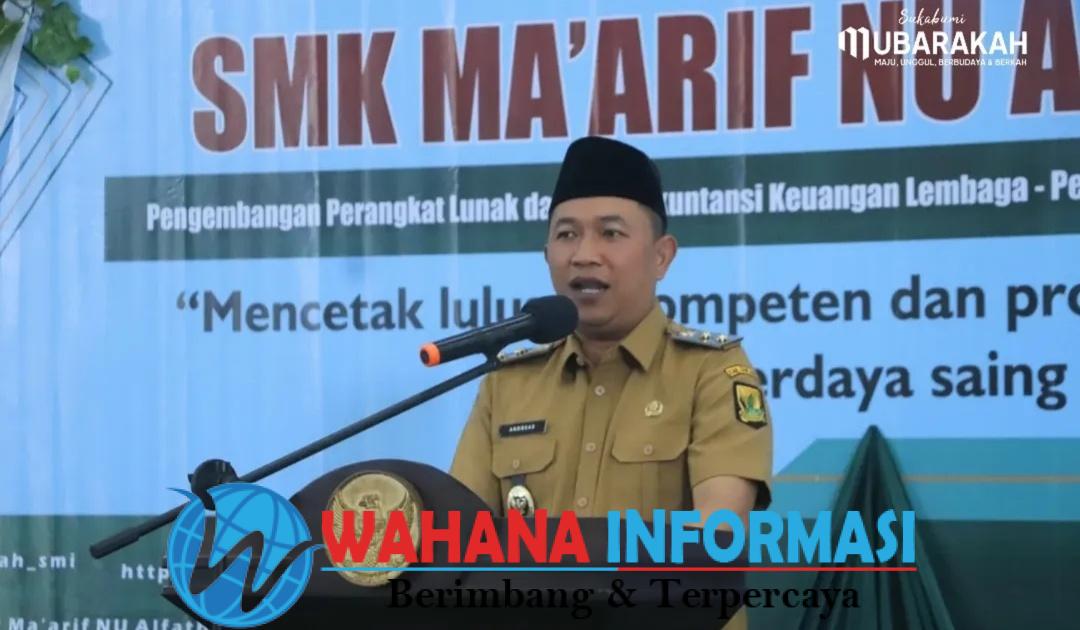 wahanainformasi.com – Sukabumi – Wakil Bupati Sukabumi H. Andreas menghadiri sekaligus melepas siswa PRAKERIN (Praktik Kerja Industri) dirangkaikan Launching Program SMK Go Global pada SMK Ma’arif NU Al-Fathonah. Bertempat di Edhotel Grahadi, Kecamatan Gunungguruh, Senin (5/1/2026).